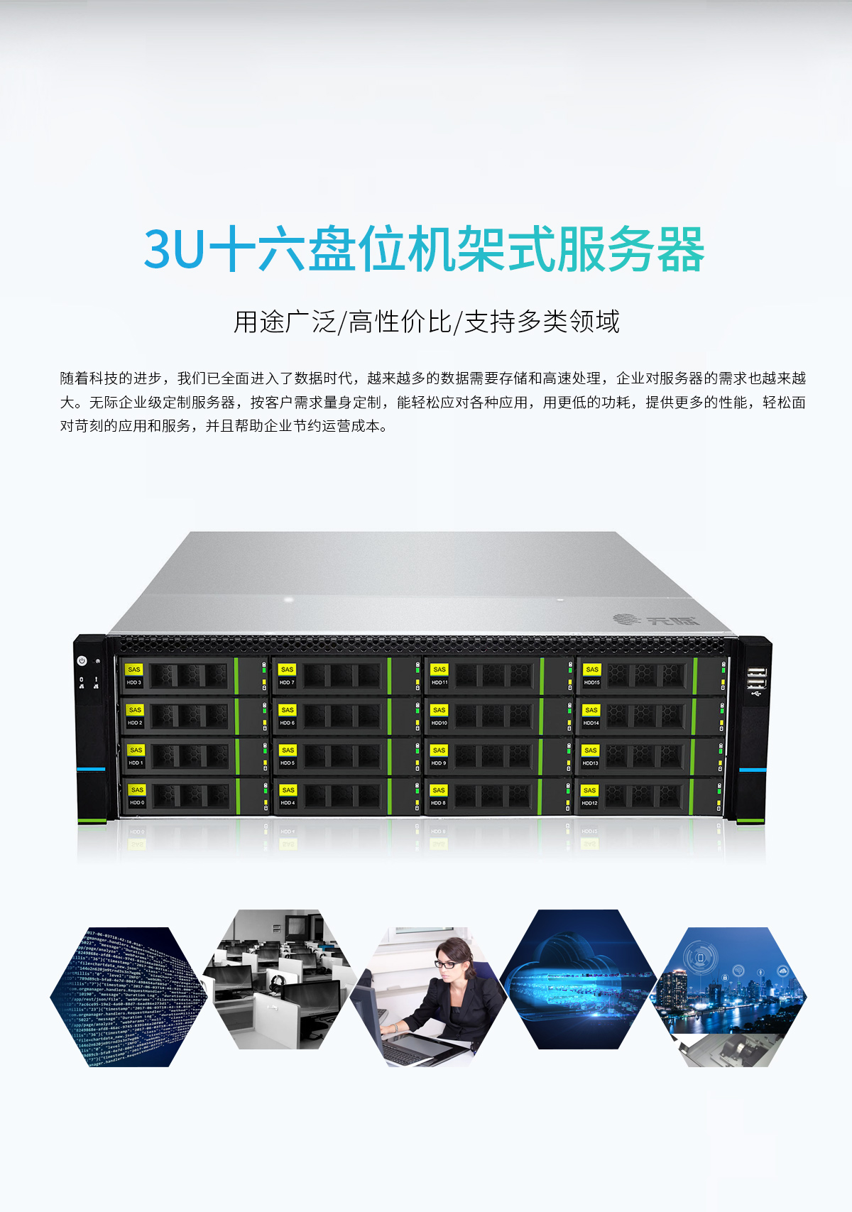 16个3.5寸 (或2.5寸)热插拔硬盘位,可内置2个2.5寸非热插拔硬盘位,可选配后置2个2.5寸热插拔硬盘位 |